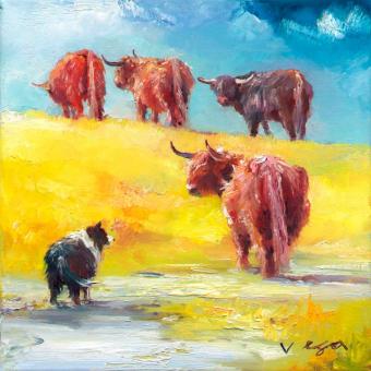 Vega is from the Isle of Lewis, on the west coast of Scotland, and paints from her own experience. It is a life bound by water and wind and subject to continual change and movement.