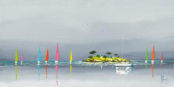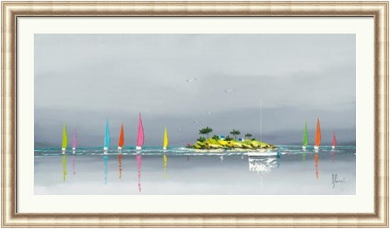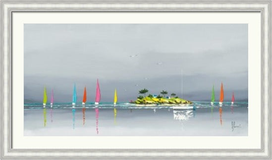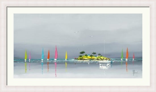 Colourful Sailboats, calm seas, beaches and horizons are the tranquil theme to this stunning nautical range by french artist Frederic Flanet.